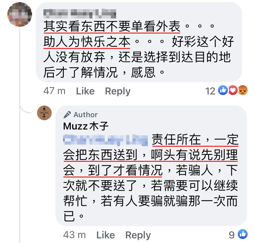 ▼ 幸好楼主没有放弃,才让这位有需要人士拿到物资。