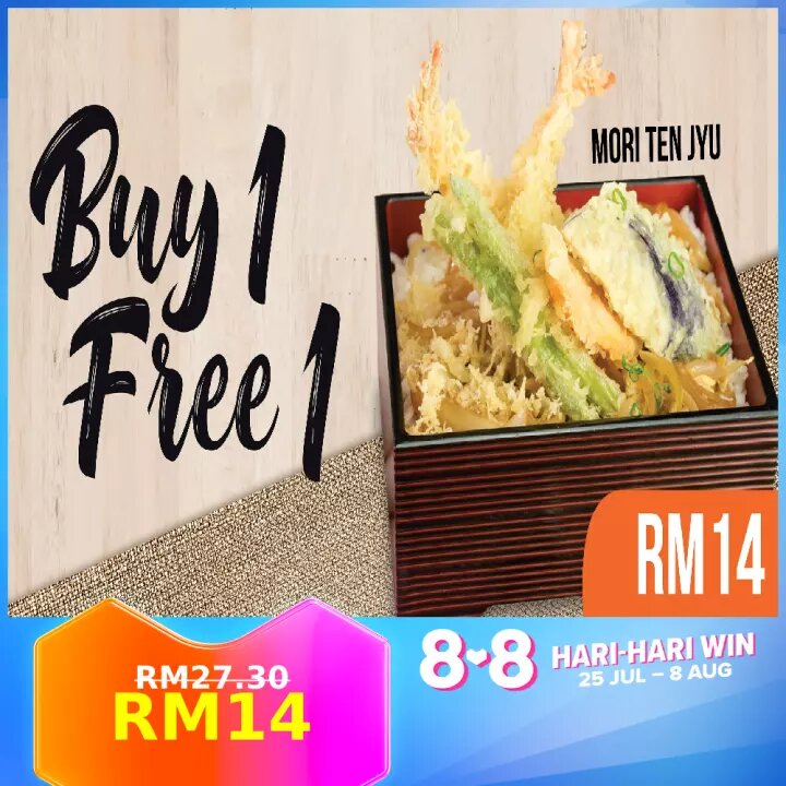 ii)Mori Ten Jyu (买一送一;Takeaway/Dine In) – RM27.30 RM14(平均一份RM7)
