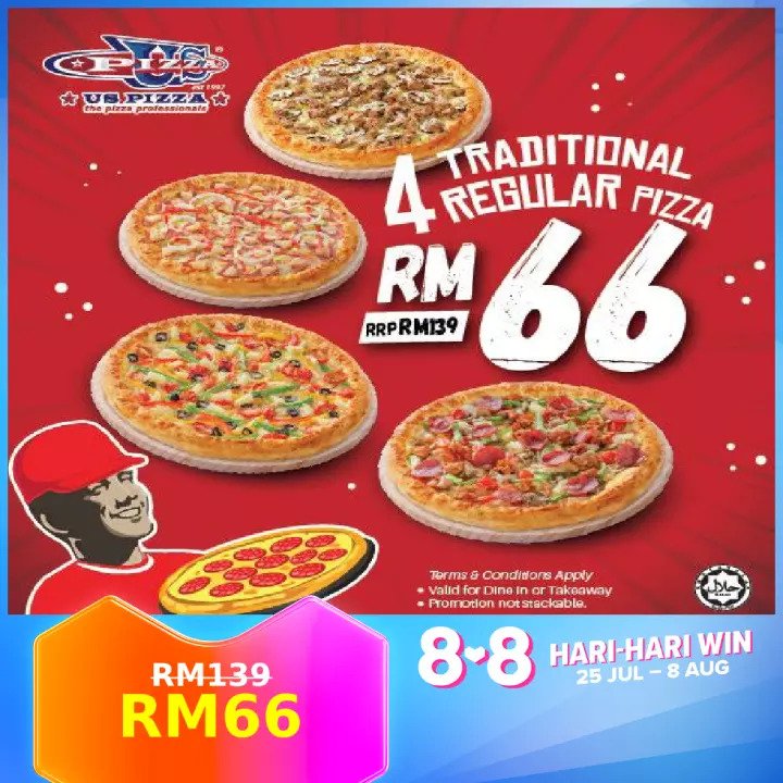 iv)4 份Traditional Regulars Pizza – RM139 RM66(平均一份RM16.50)