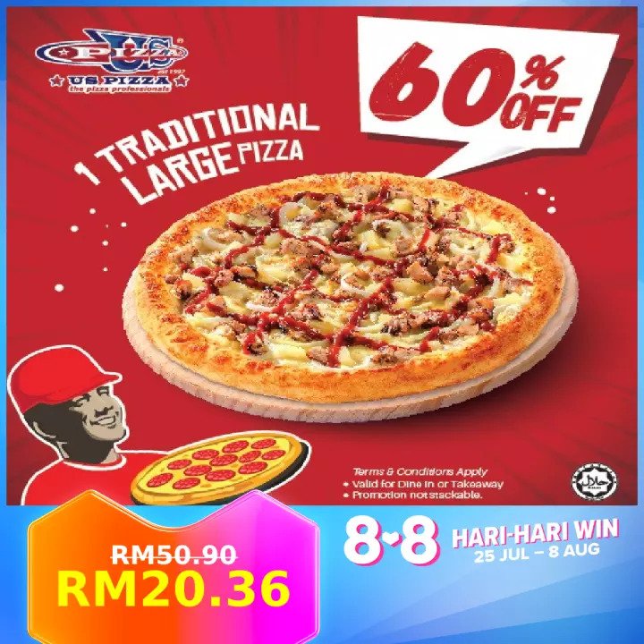 i)Large Pizza All Traditional Flavour – RM50.90 RM20.36