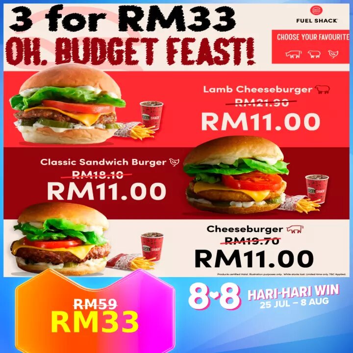 iii)【Oh-Budget-Feast】3 Burger Sets – RM59 RM33