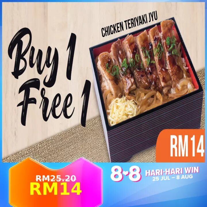 ii)Chicken Teriyaki Jyu (买一送一;Takeaway/Dine In) – RM25.20 RM14(平均一份RM7)