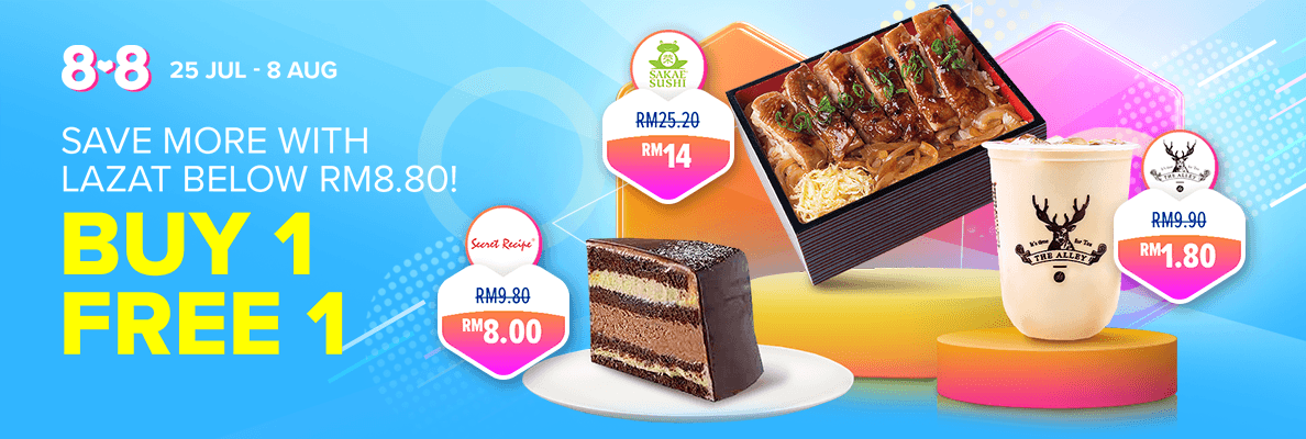 为了迎接【8.8】网购节的到来,大马美食商家与Lazada 推出一系列的【Lazat Bazaar】大优惠!最低只需RM0.88!