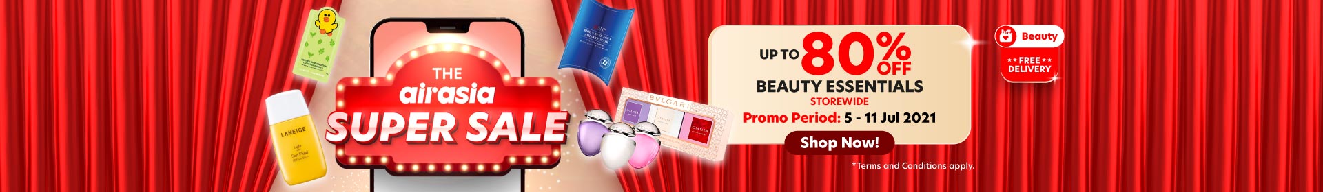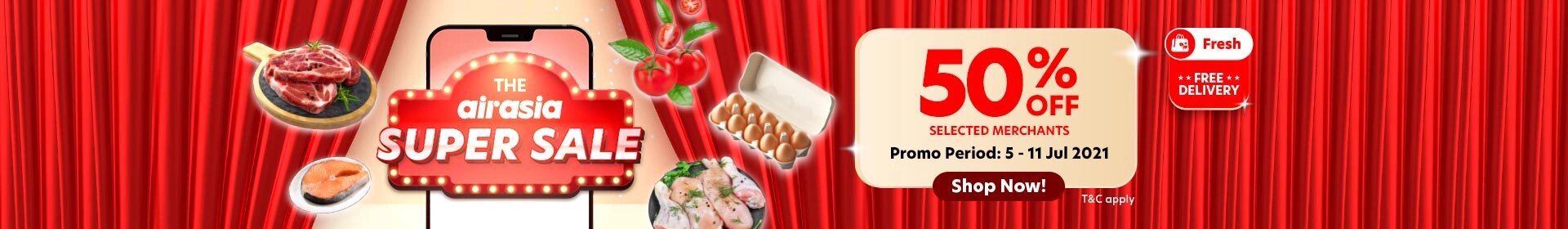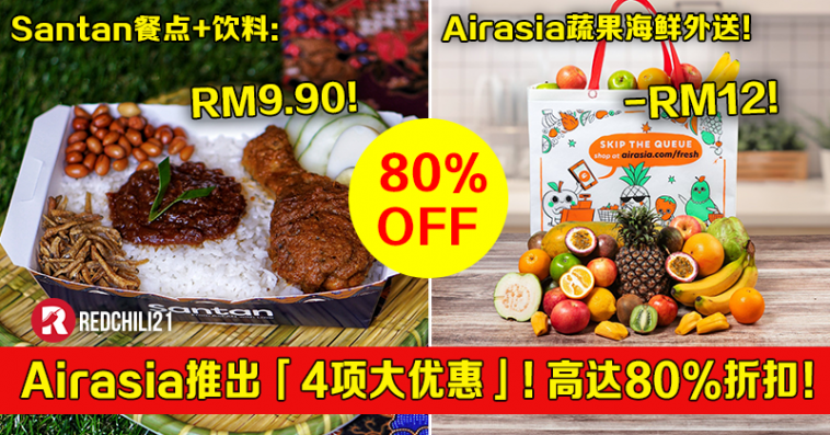 从即日起至7月11日,Airaisa 官网推出美妆护肤品、Santan Food、Airasia 蔬果海鲜、食物外送可享有特别优惠!高达80%折扣!