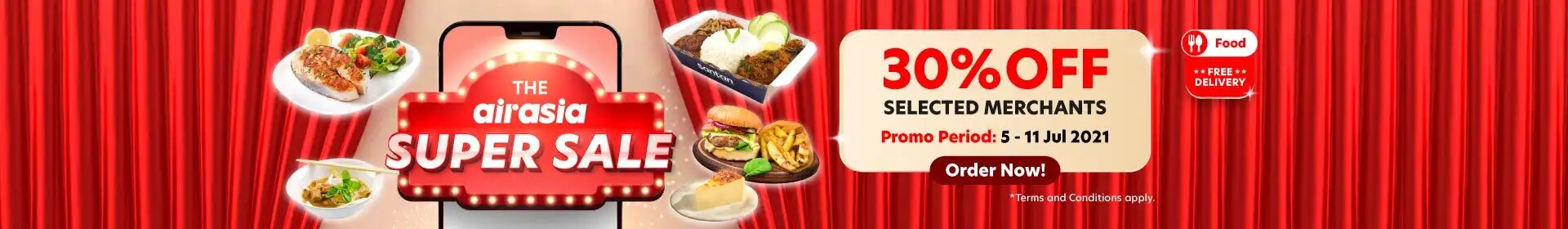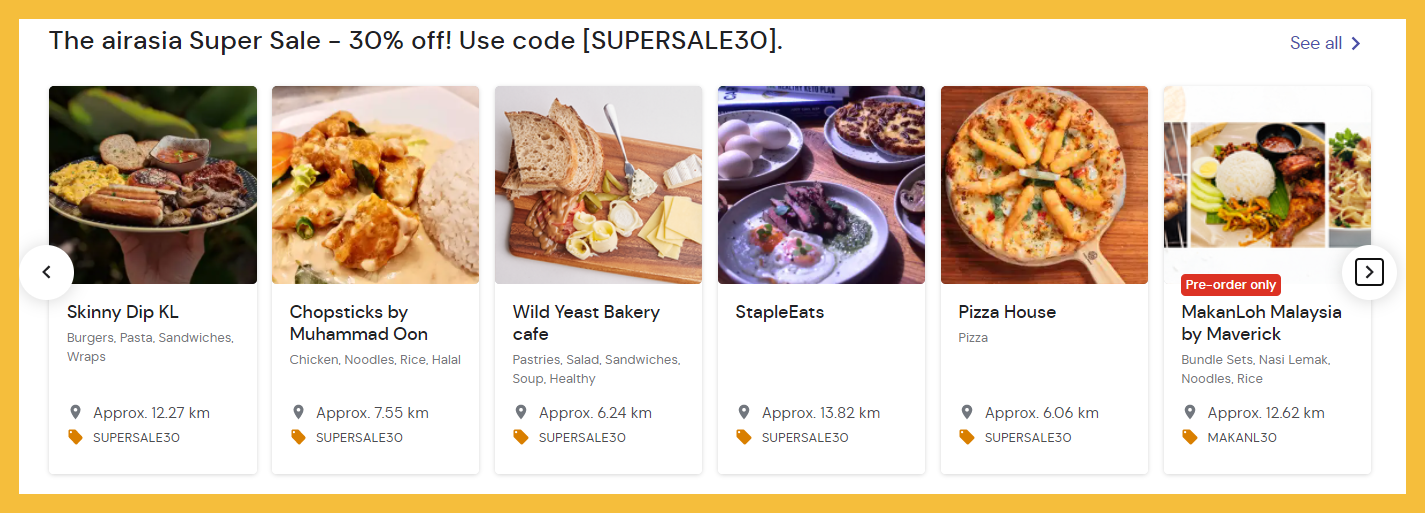 ③ Airasia 美食外送优惠!指定餐厅美食可享有30%折扣;订购【点击这里】