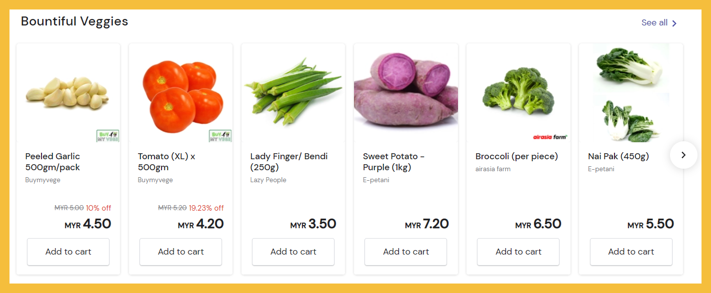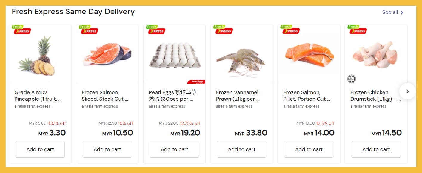 ④ Airasia 新鲜蔬果及海鲜优惠!高达50%折扣;订购【点击这里】
