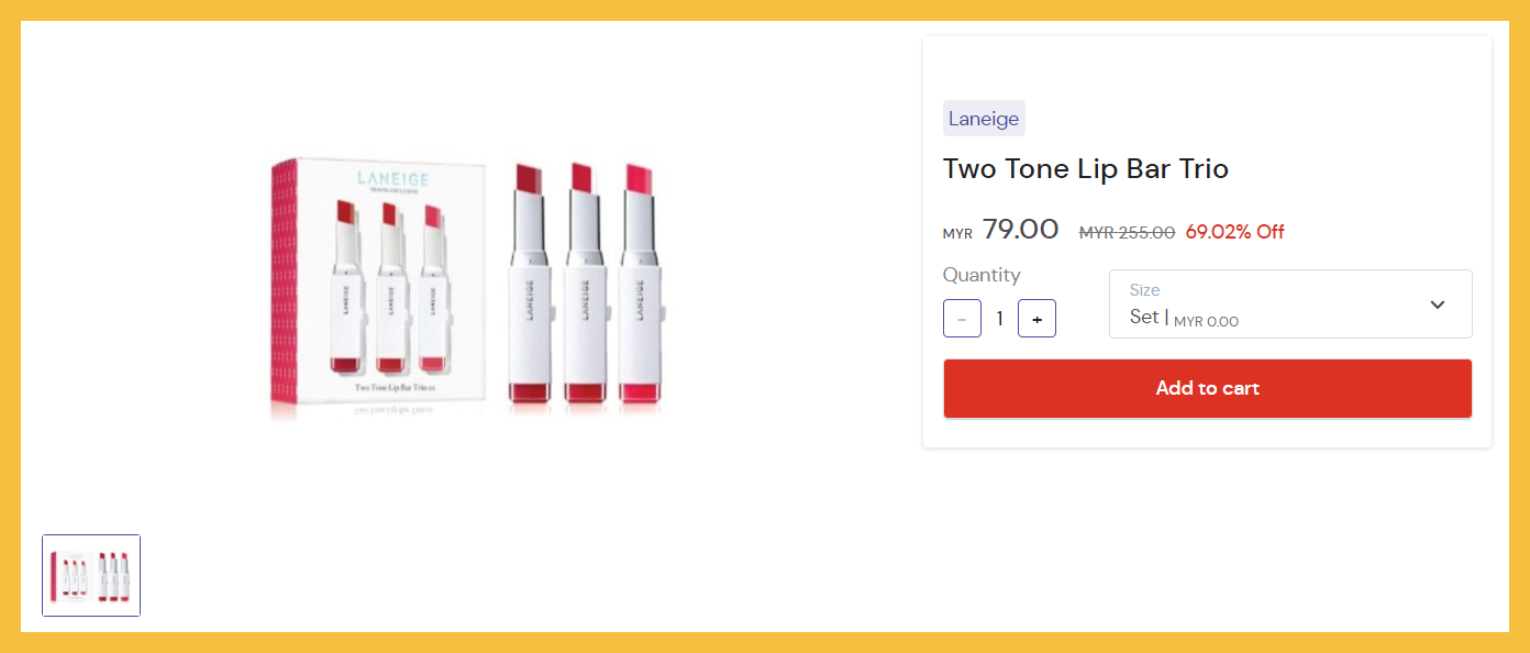 ▼ Laneige Two Tone Lip Bar Trio【折扣69.02%】- RM79(原价RM69.02);购买【点击这里】