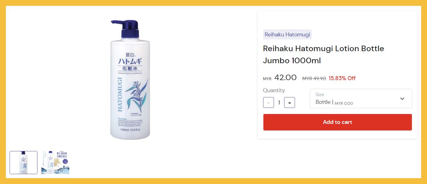▼ Reihaku Hatomugi Lotion Bottle Jumbo 1000ml【折扣15.93%】- RM42(原价RM49.90);购买【点击这里】