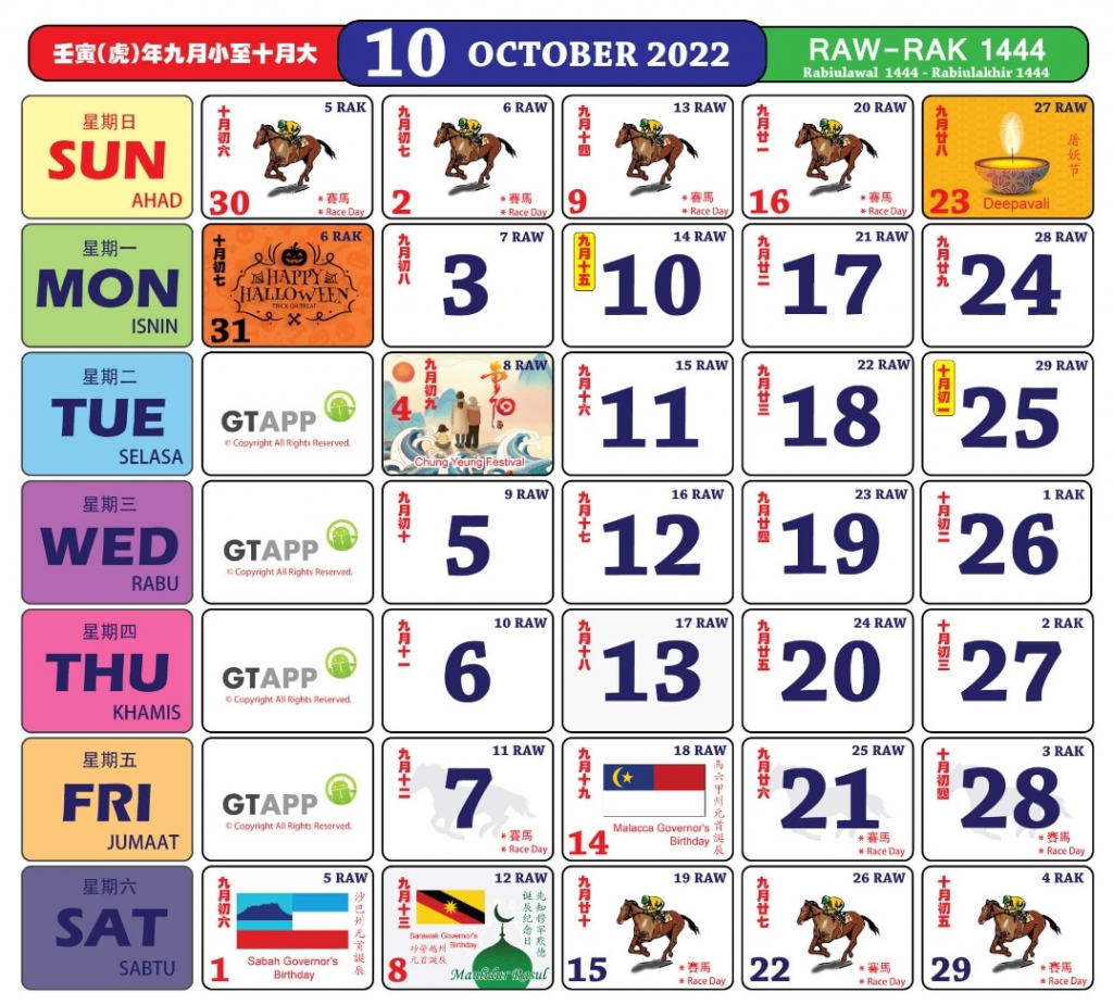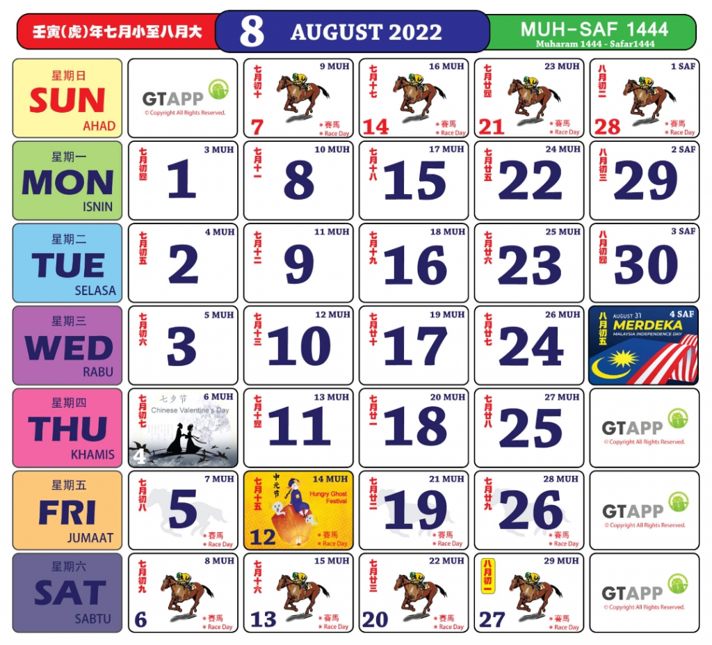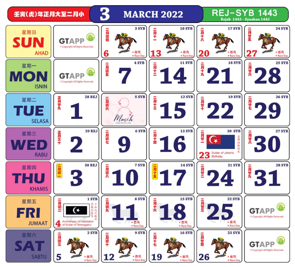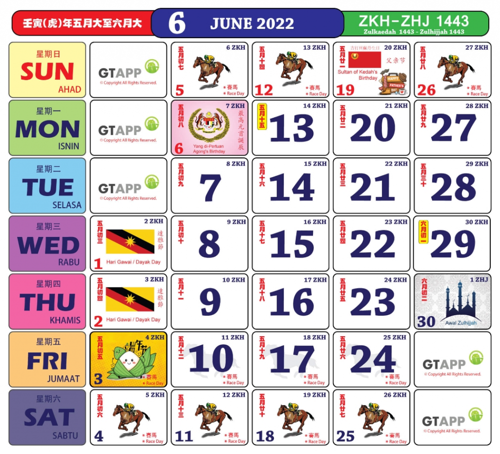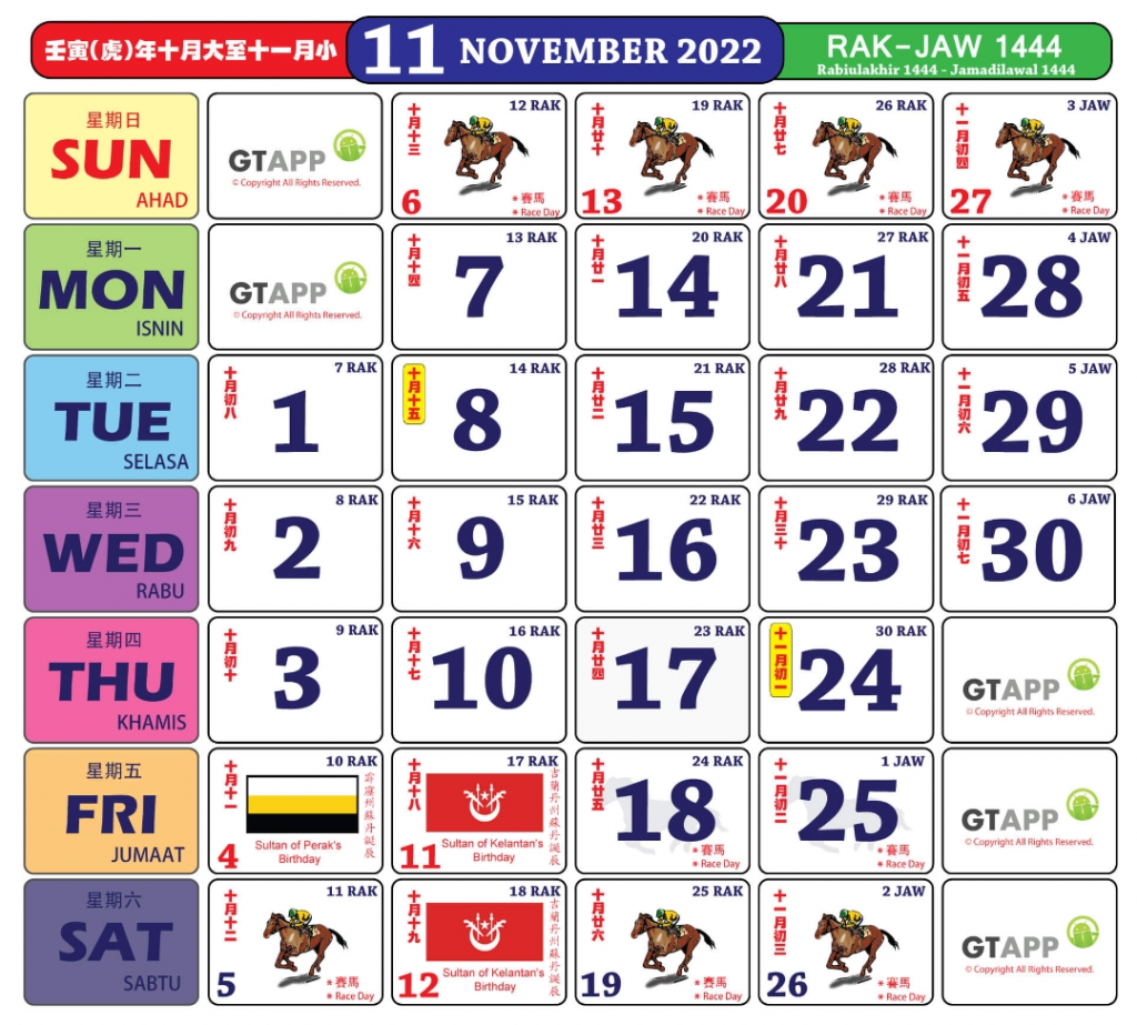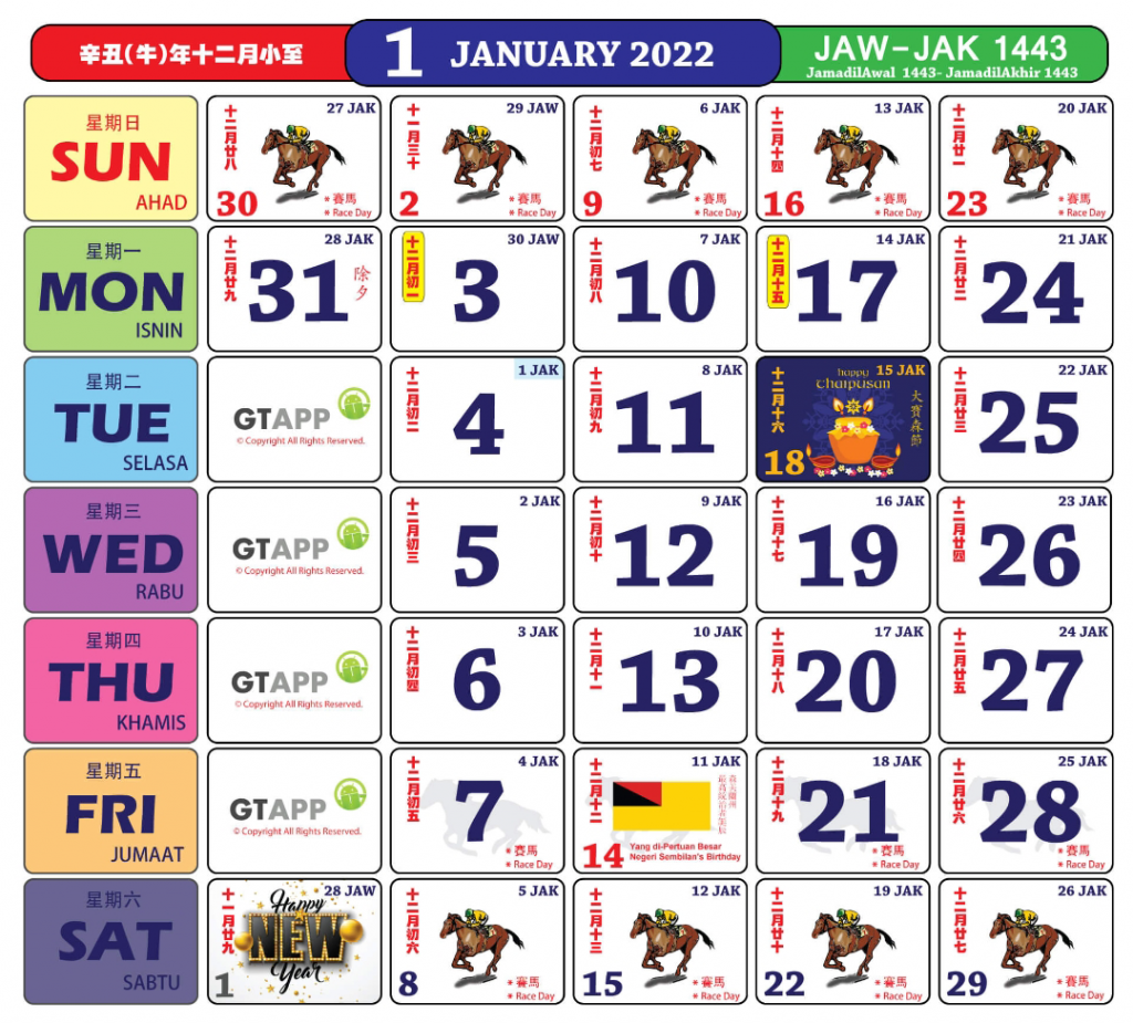 跑马日历来源:Malaysia Calendar 2020 -2022【GTAPP】