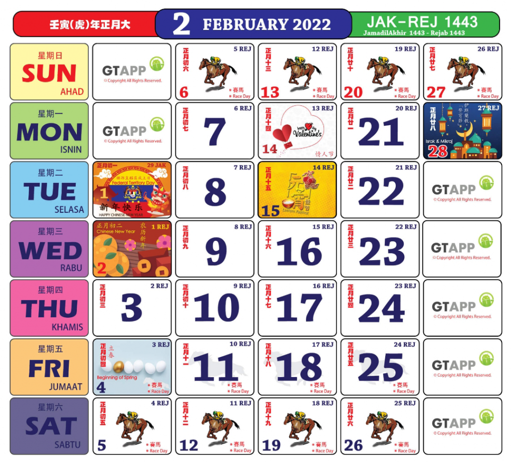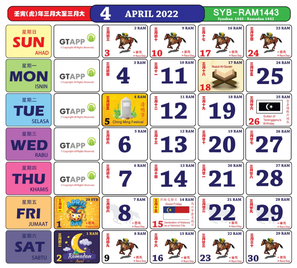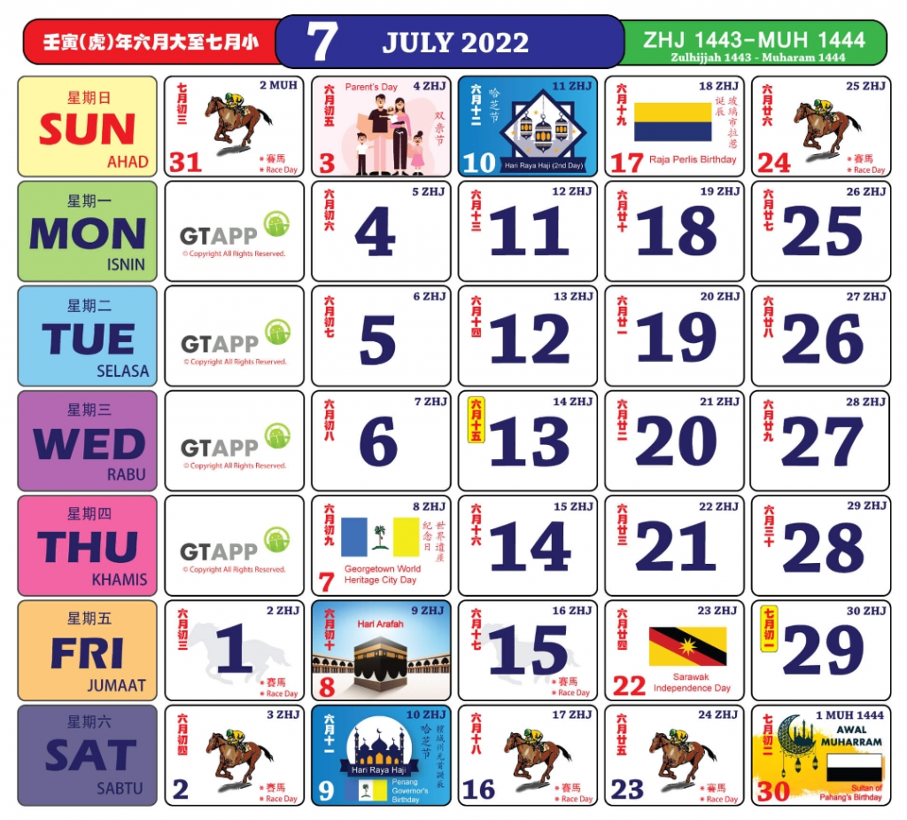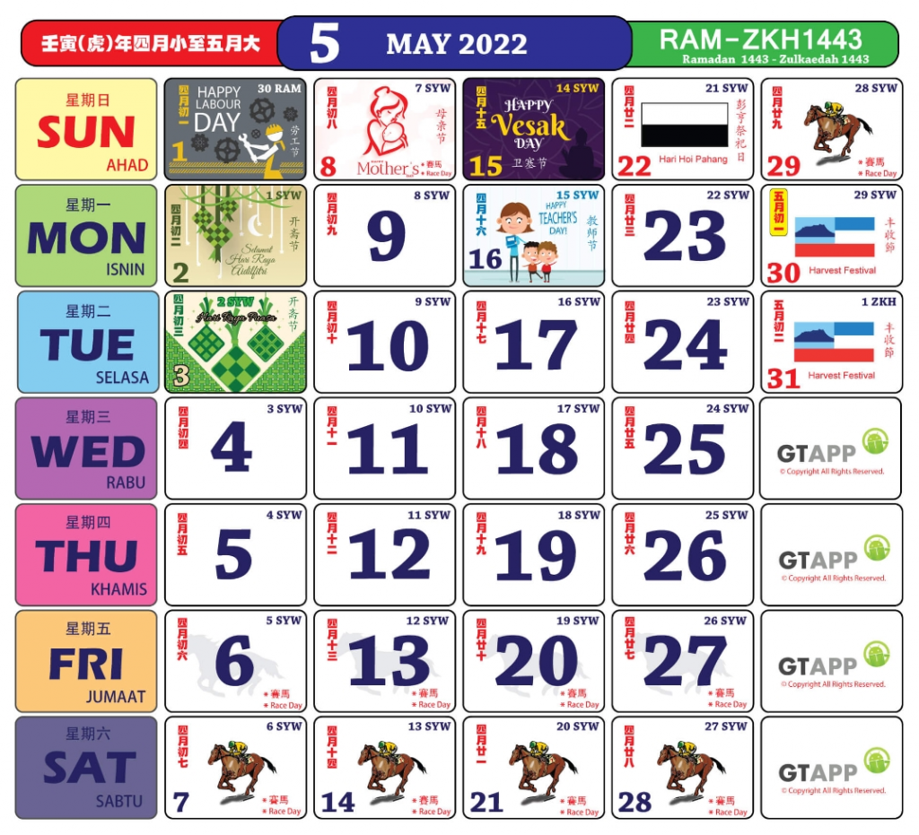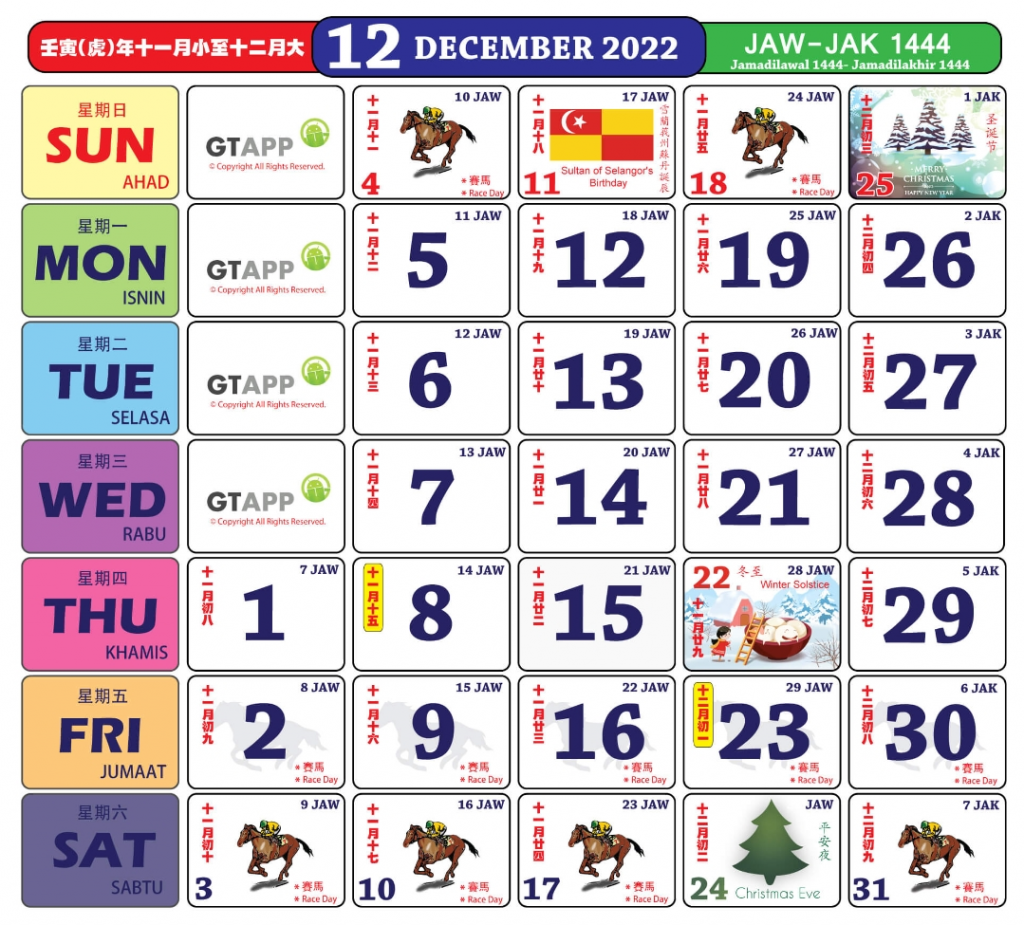 跑马日历来源:Malaysia Calendar 2020 -2022【GTAPP】