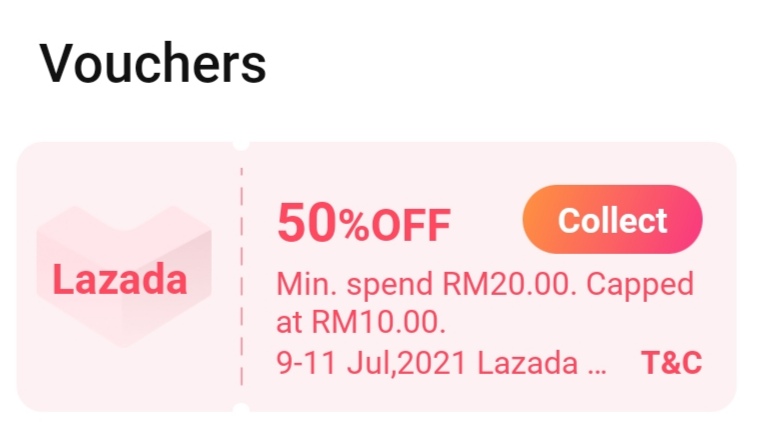 ① 首先打开Lazada App,领取RM5 折扣券和免邮券【点击这里】