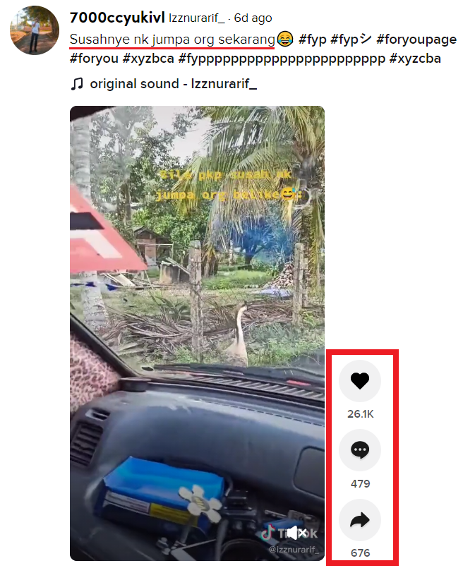 近日一段视频在 TikTok 流传,两名大马男生开着车出去,路上遇到一只鹅,他们居然就对着鹅说话了!