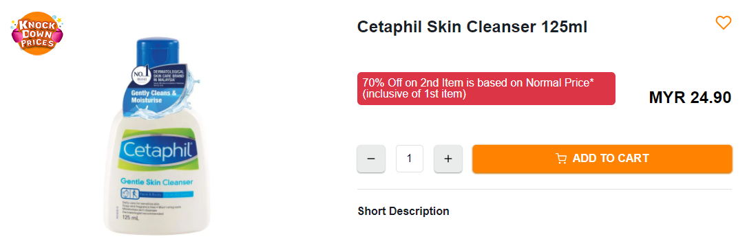 ※ 图中所显示是1样商品的价钱!(2瓶洗脸霜 – RM32.37;平均一瓶只需RM16.19)