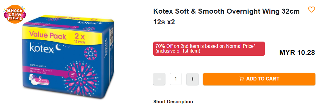 ※ 图中所显示是1样商品的价钱!(2包卫生巾- RM17.62;平均一包只需RM8.81)