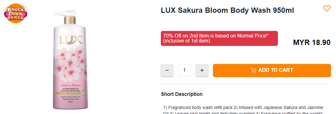 ▼ Promotion 7:LUX Sakura Bloom Body Wash 950ml;购买【点击这里】