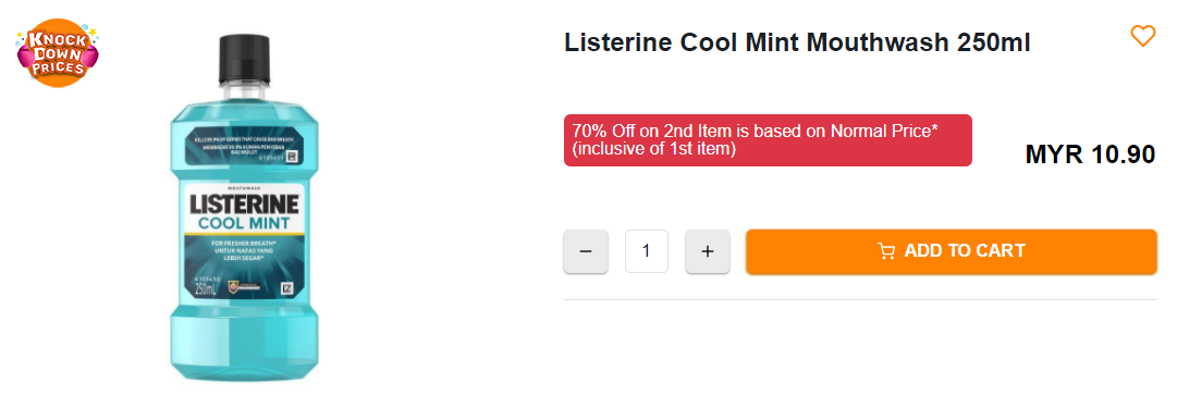 ※ 图中所显示是1样商品的价钱!(2瓶漱口水 – RM14.17;平均一瓶只需RM7.09)