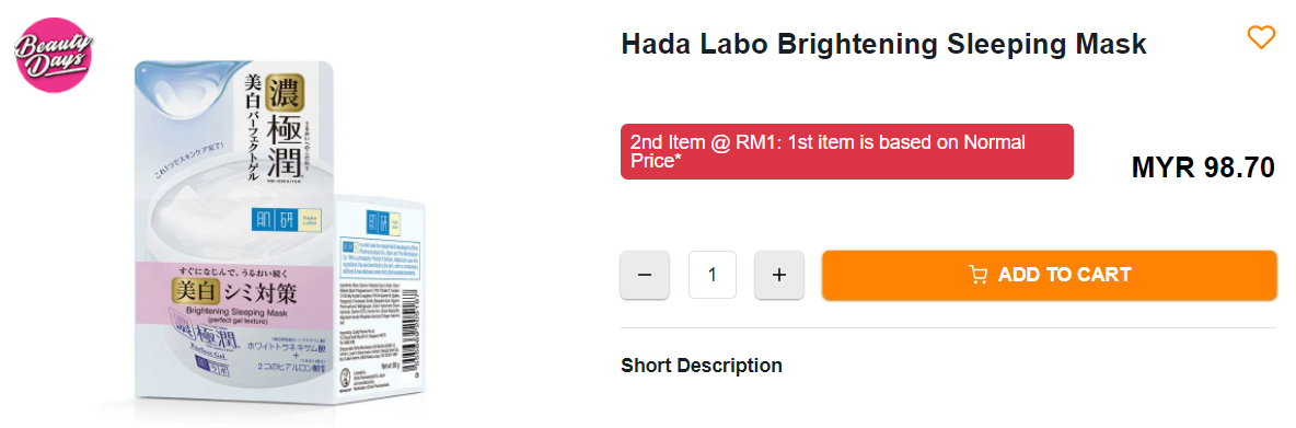 ▼ Promotion 8:Hada Labo Brightening Sleeping Mask;购买【点击这里】
