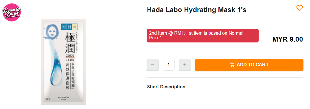 ※ 图中所显示是1样商品的价钱!(2片面膜 – RM8.90;平均一片只需RM4.45)