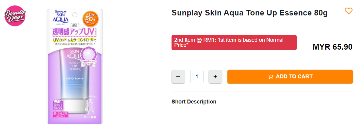 ※ 图中所显示是1样商品的价钱!(2瓶Sunplay 防晒 – RM66.90;平均一瓶只需RM33.45)