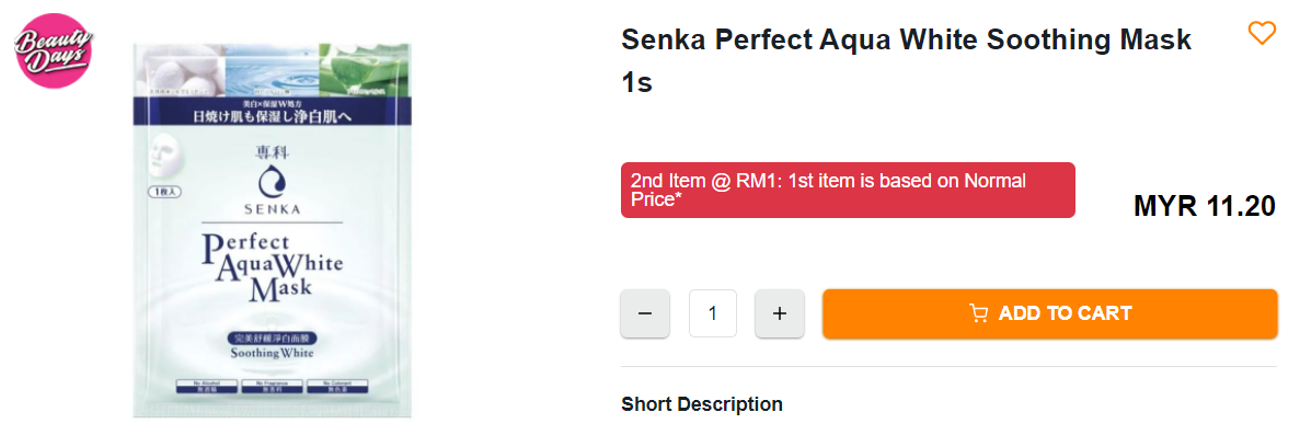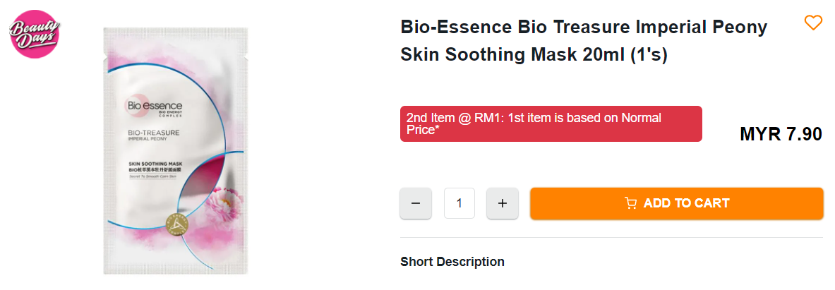 ※ 图中所显示是1样商品的价钱!(2片面膜 – RM10;平均一片只需RM5)