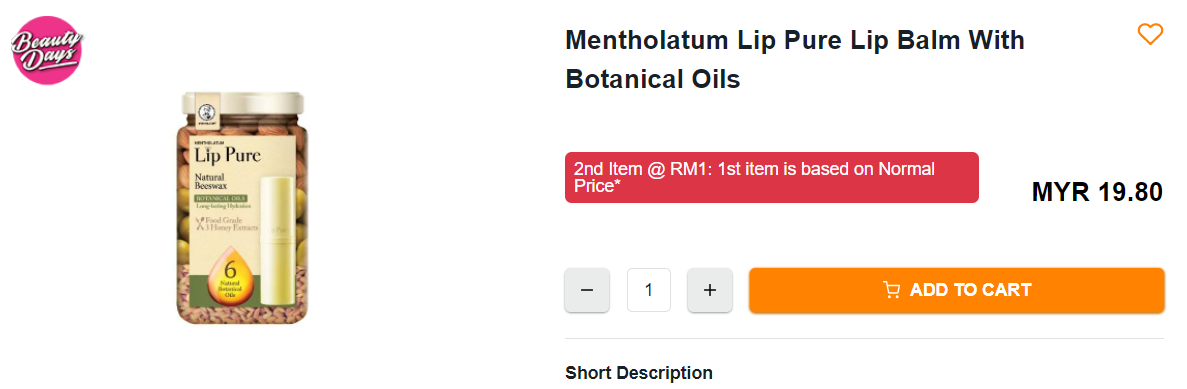 ※ 图中所显示是1样商品的价钱!(2支护唇膏 – RM20.80;平均一包只需RM10.40)
