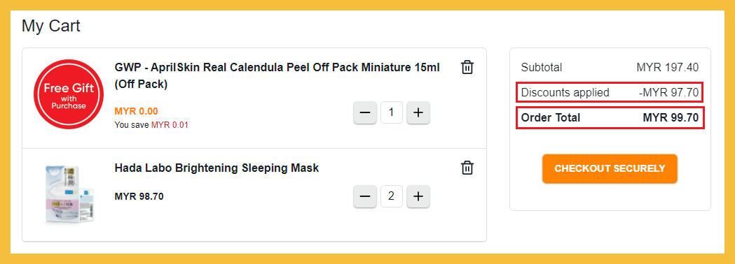 ▼ 只要把商品加进购物车,系统就会直接显示折扣后价格!(以下是第二样RM1的商品)