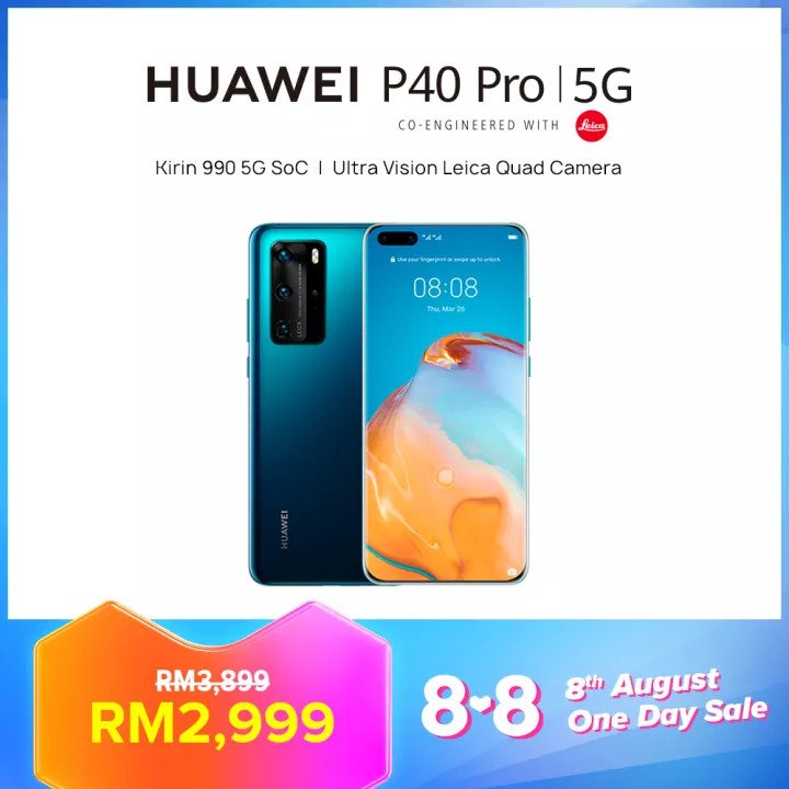 ▼ HUAWEI P40 Pro 5G Smartphone (8GB RAM + 256GB ROM) – 只需RM2999(原价RM3899)