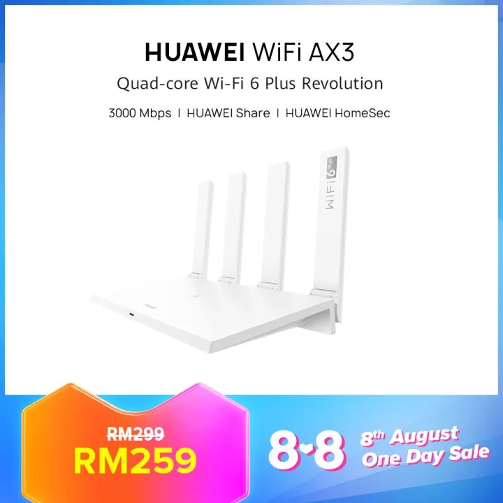 ▼ HUAWEI WiFi AX3 Quad-Core Router | 3,000 Mbps – 只需RM259(原价RM299)