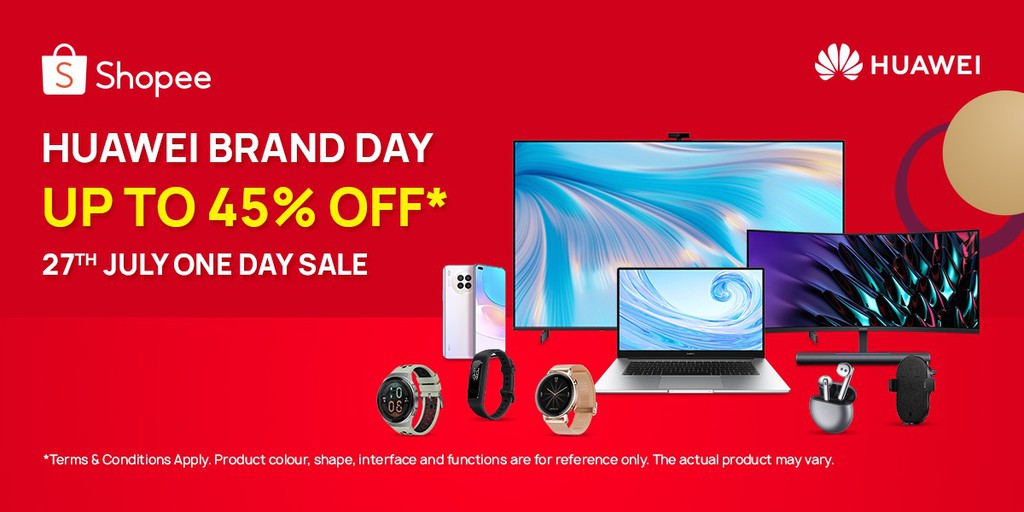 想要购买华为新手机、平板电脑或其他产品的朋友,可在Shopee Huawei 官网的7月27日优惠当天下单!
