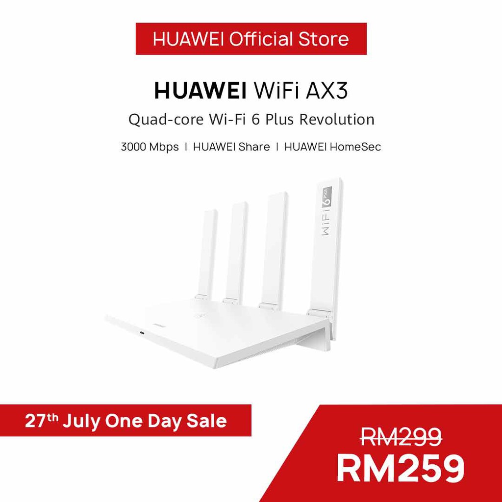 ▼ HUAWEI WiFi AX3 Quad-Core Router | 3,000 Mbps – RM259(原价RM299)