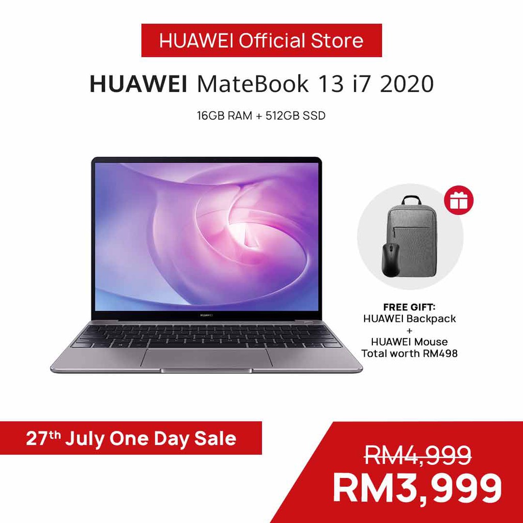 ▼ HUAWEI MateBook 13 i7 2020 + FREE Mouse – RM3999(原价RM4999)
