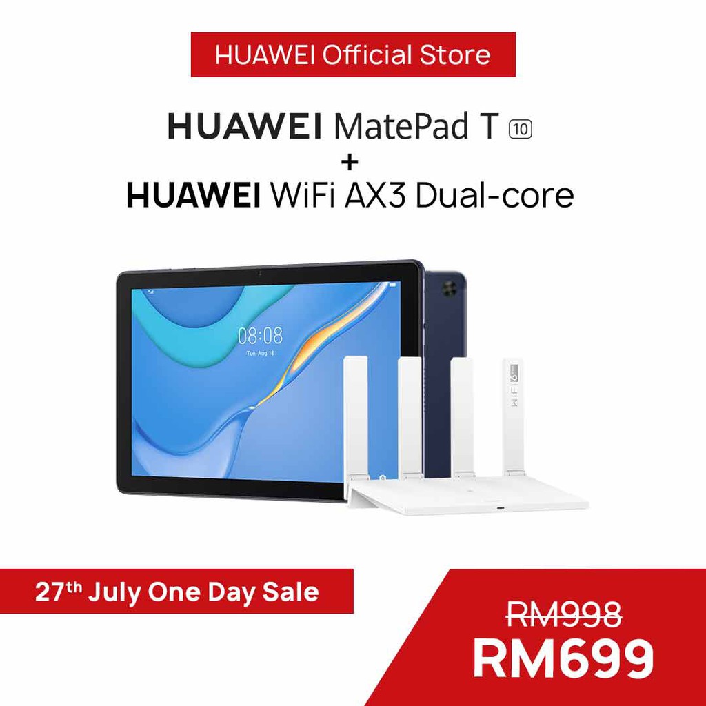 ▼ HUAWEI MatePad T10 Tablet + HUAWEI WiFi AX3 Dual-Core Router – RM699(原价RM998)