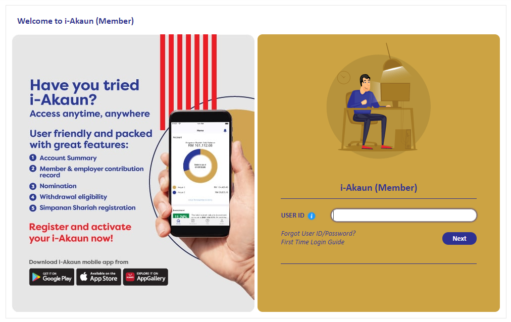 客服人员将会提供一组EPF i-Akaun ID Pengguna 和 Kata Laluan。过后,你就可浏览secure.kwsp.gov.my 【点击这里】登录i-Akaun View Mode。