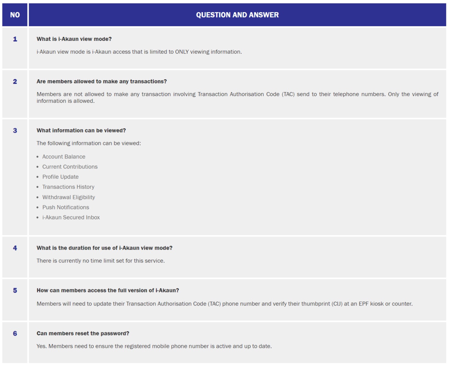 i-Akaun View Mode 没有任何有效期或时间限制!倘若想要使用i-Akaun 完整服务,会员需要前往公积金局柜台提供指纹盖章。