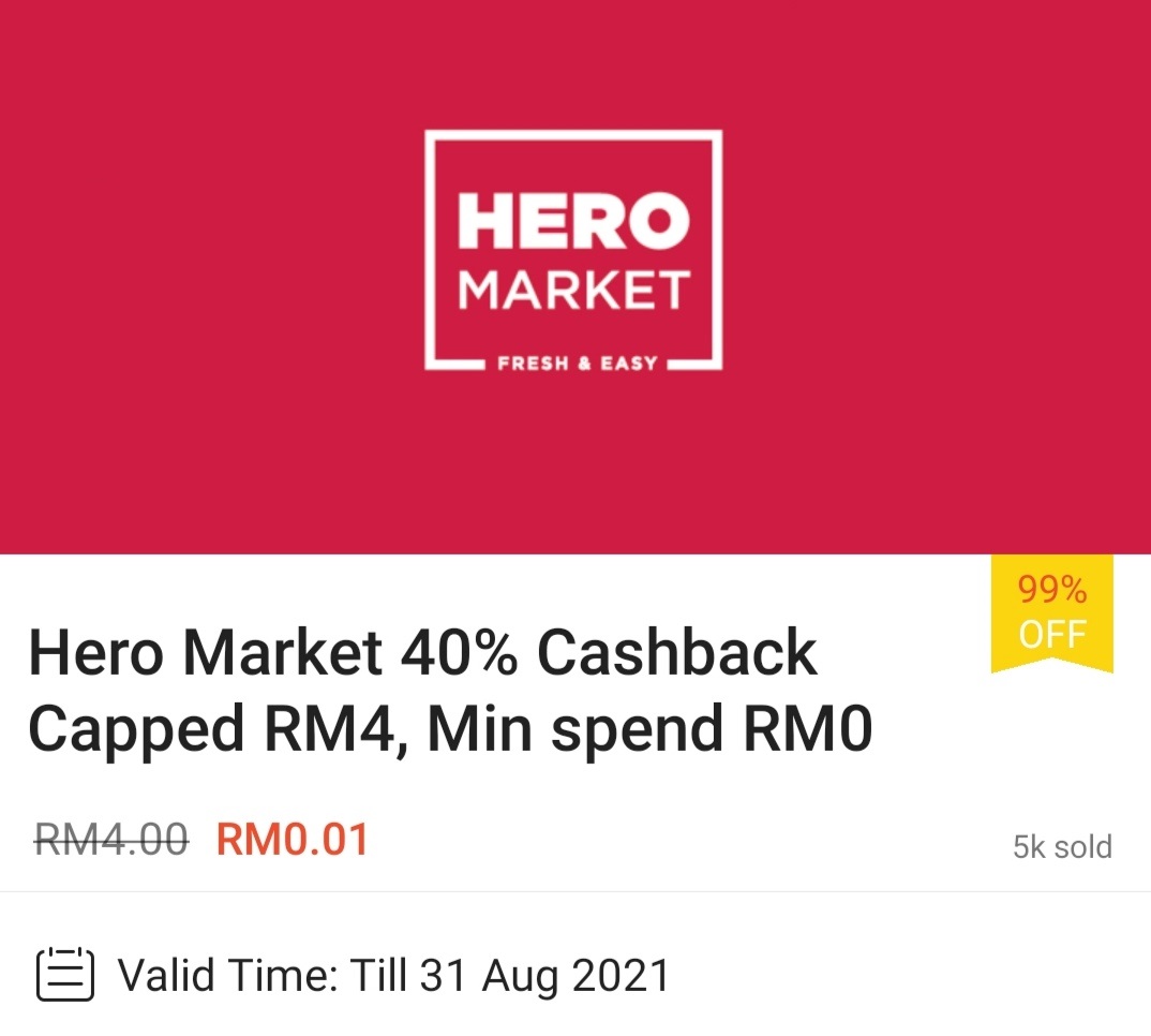 ▼⑥ Hero Market – 40%现金回扣(最高折扣RM4 / 无需最低消费);购买【点击这里】