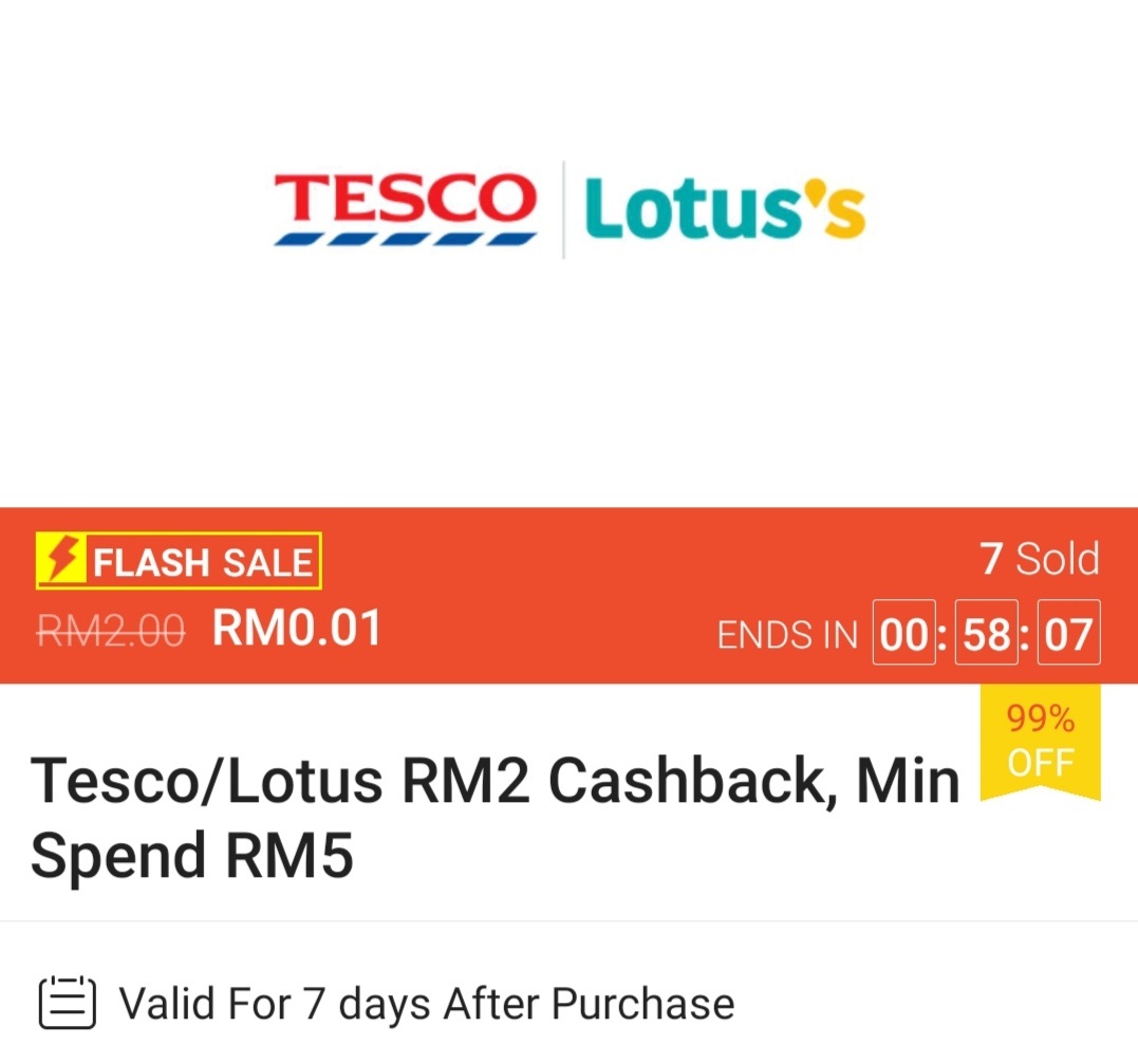 ▼① Tesco/Lotus – 消费RM5 可获得RM2 现金回扣;购买【点击这里】
