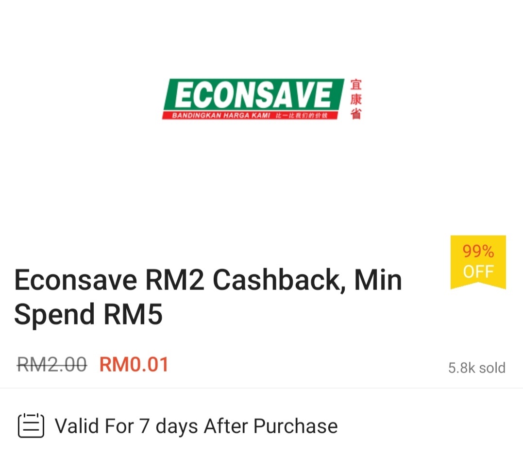 ▼④ Econsave – 消费RM5 可获得RM2 现金回扣;购买【点击这里】