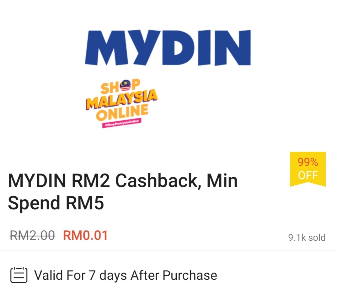 ▼⑤ Mydin – 消费RM5 可获得RM2 现金回扣;购买【点击这里】