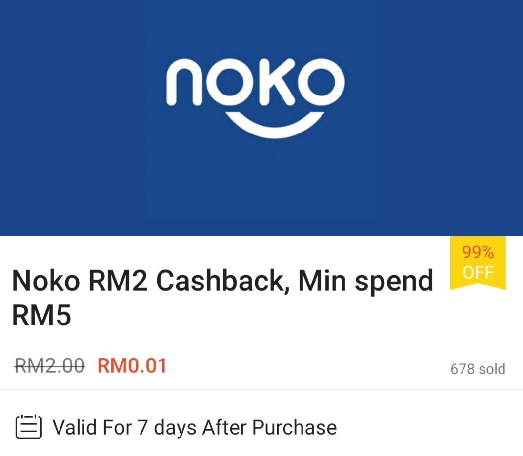 ▼⑨ Noko – 消费RM5 可获得RM2 现金回扣;购买【点击这里】