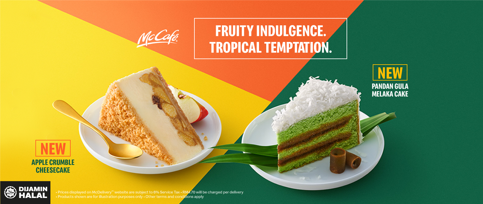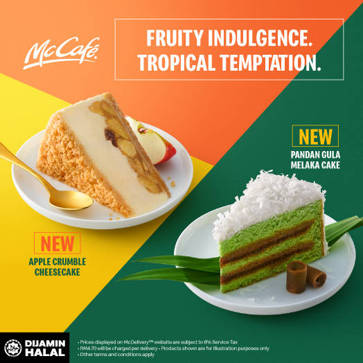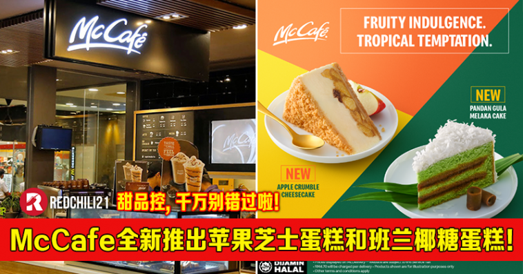 爱吃蛋糕的朋友,有口福了!大马McCafe 全新推出2种口味蛋糕,那就是Apple Crumble Cheesecake 和Pandan Gula Melaka Cake!