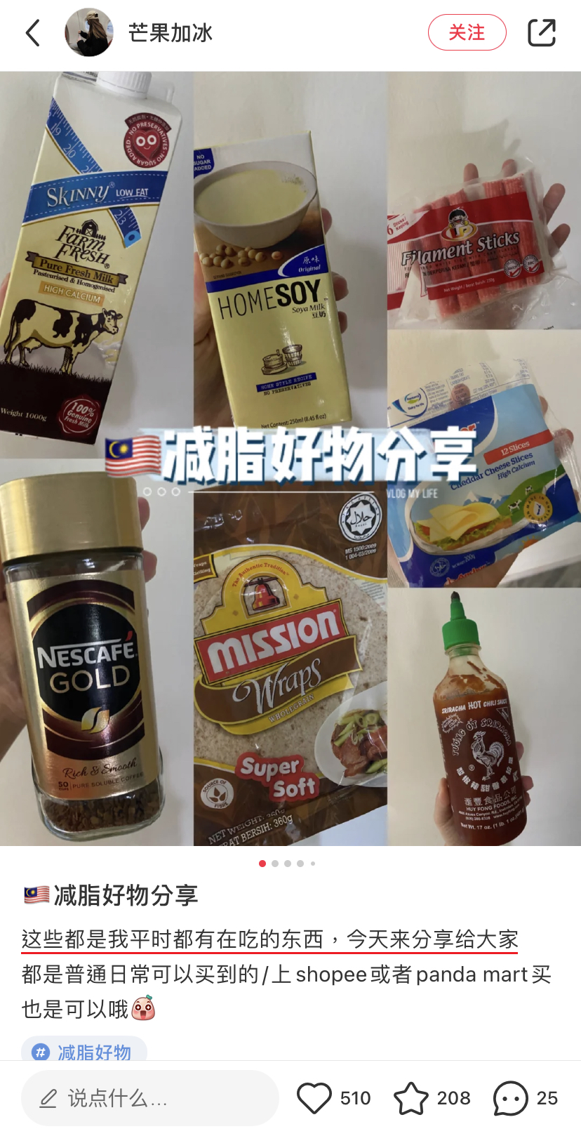 一名大马女生日前就在小红书分享7个低卡又美味的减脂好物,这样吃、这样喝准没错!而且这些好物都是价格便宜又容易买到的哦!