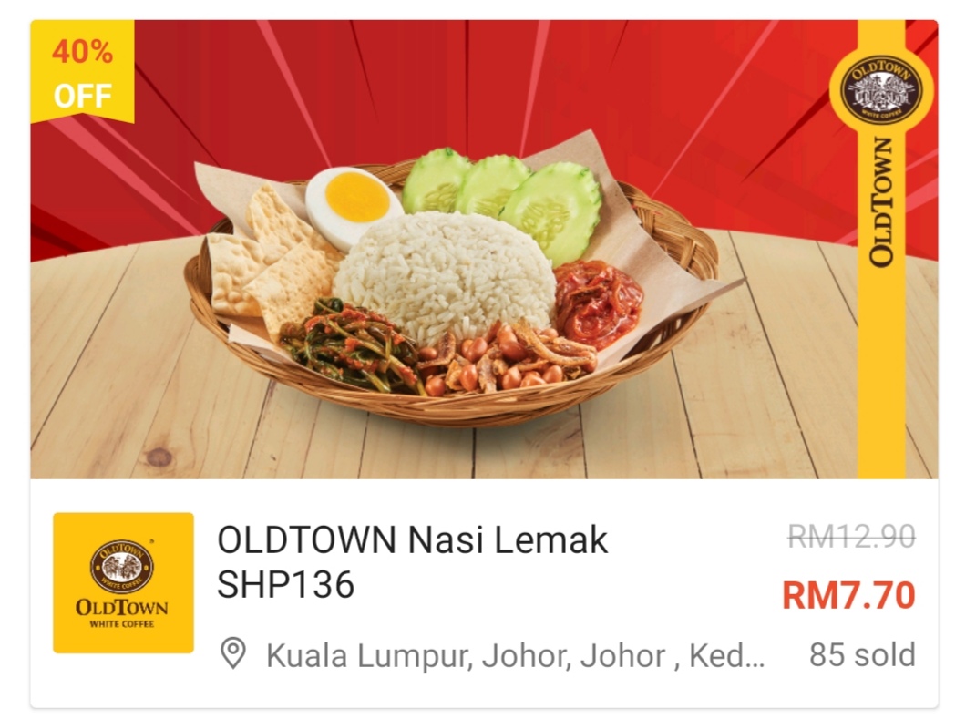 促销活动:Shopee Oldtown 美食优惠券!餐点最低RM8!