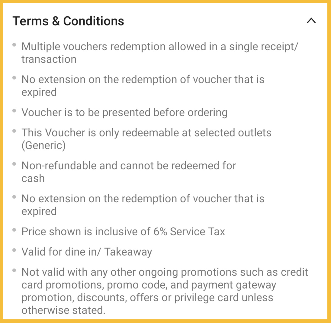 - 此优惠适用于餐厅内用餐及外带服务((管指令期间只限外带服务)