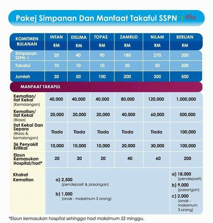 ※ SSPN-i Plus 附带保险,共有6种配套分别是Intan、Delima、Topas、Zamrud、Nilam 及Berlian。