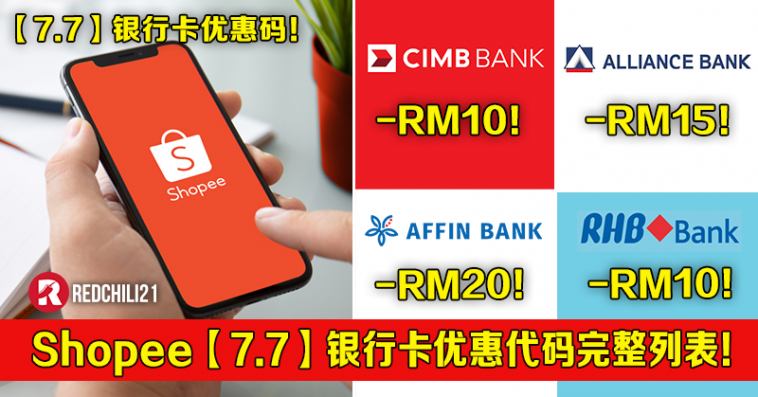只要你在7月7日当天在Shopee 消费并使用指定银行卡付款,可享有高达RM20 折扣优惠!现在小编一一列出【7.7】银行卡优惠代码!