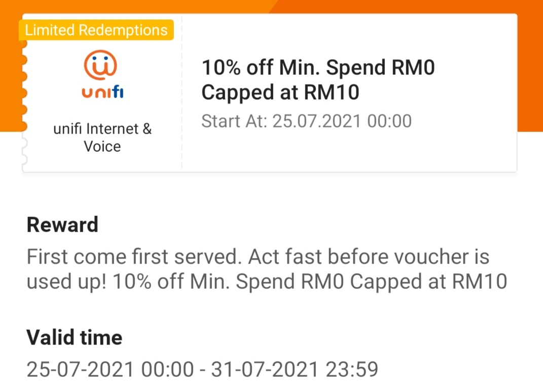 ▼ii)缴付Unifi 账单可获得10%回扣(高达RM10回扣);优惠代码【UNIFIJULY21】