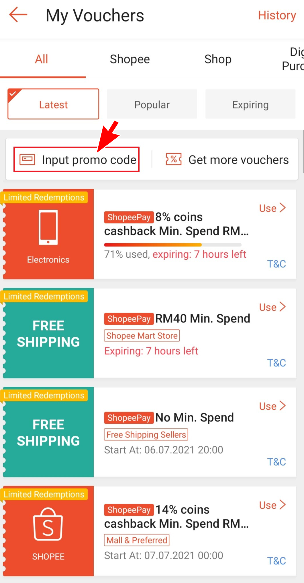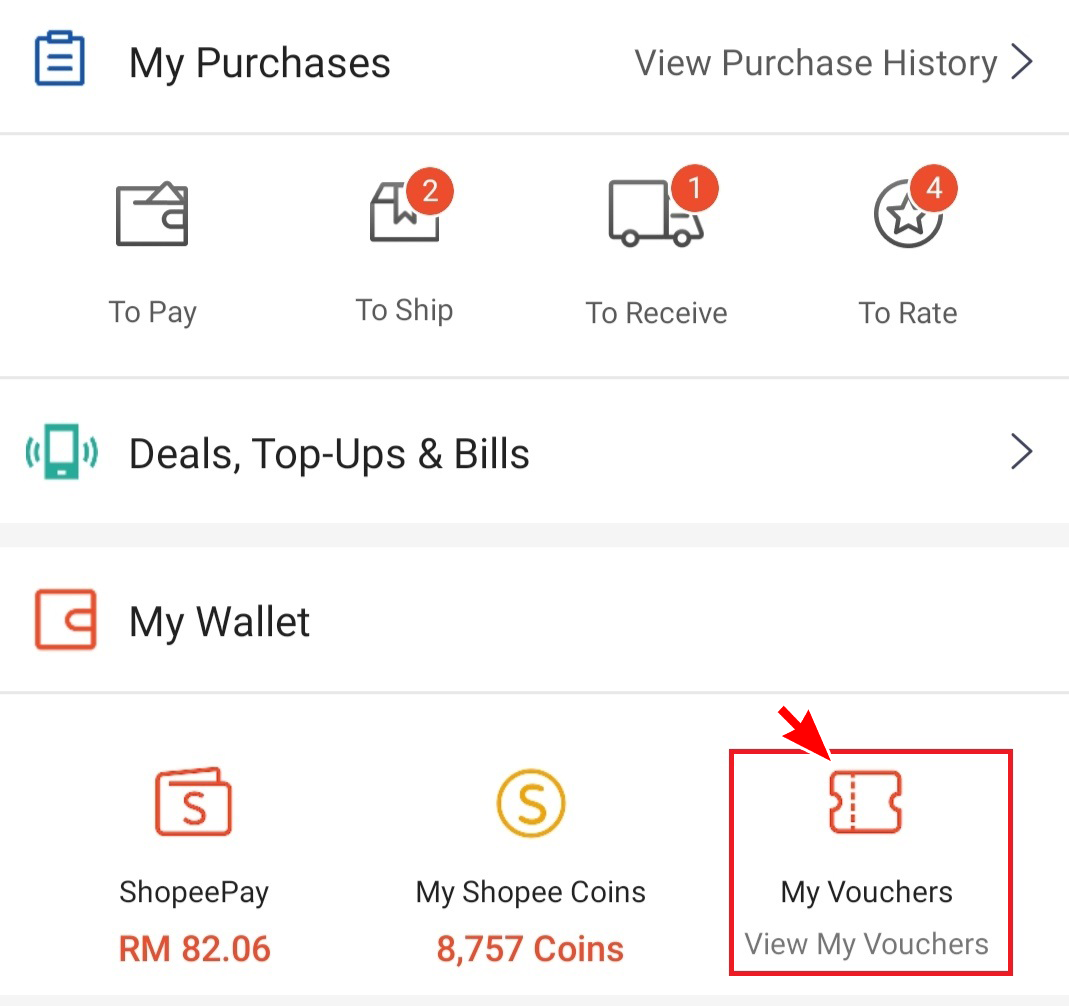 ▼步骤1:打开Shopee 打开“My Voucher”(可直接点击链接【点击这里】)