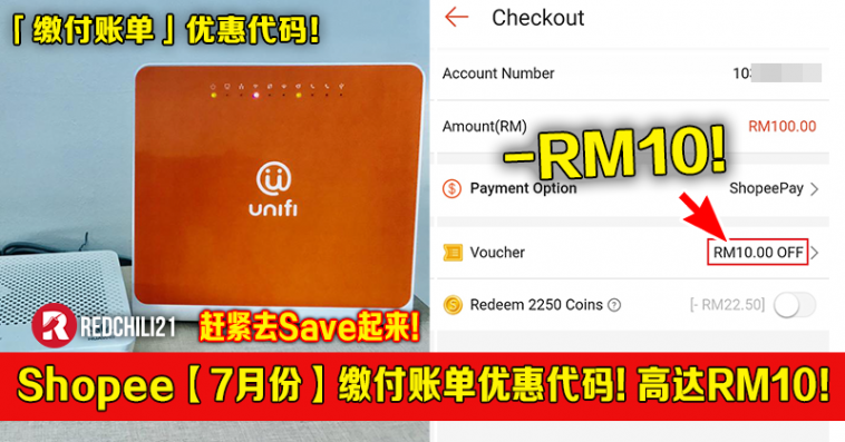 大马Shopee 将从7月25日至7月31日推出2项缴付账单活动!只要你通过Shopee 缴付水电杂费或Unifi 账单可享有高达20%折扣(最高可折扣RM10)!