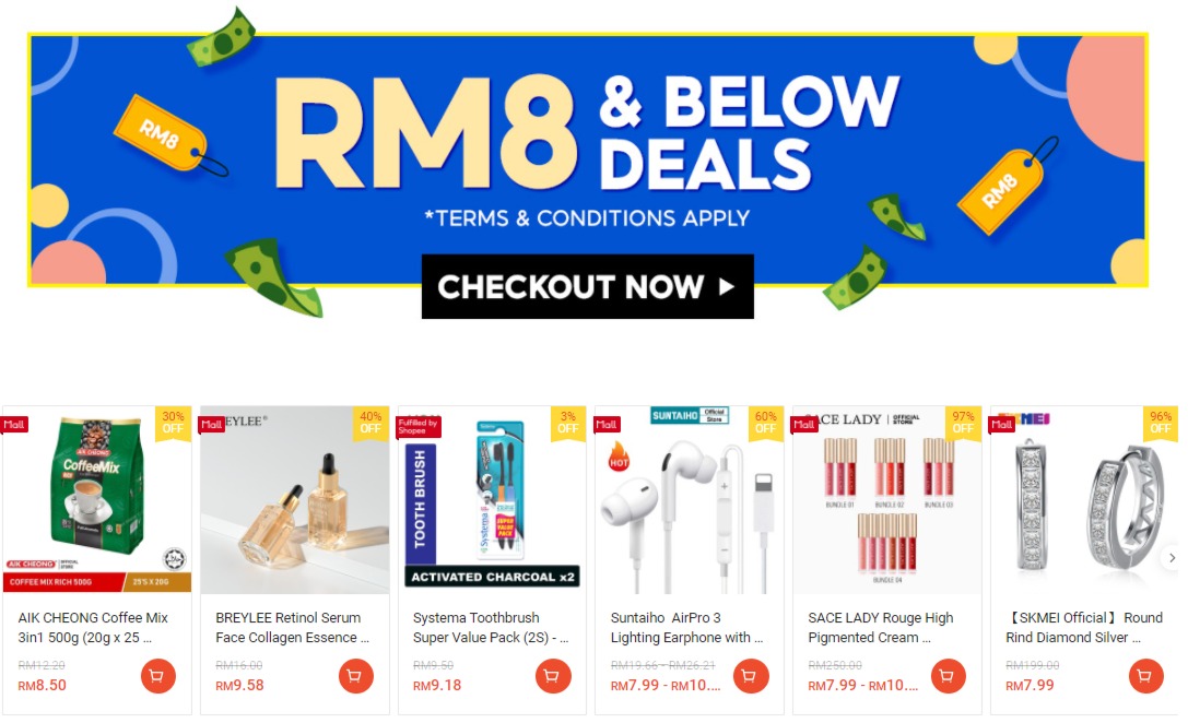 在指定时段推出最低RM8 商品限时优惠!