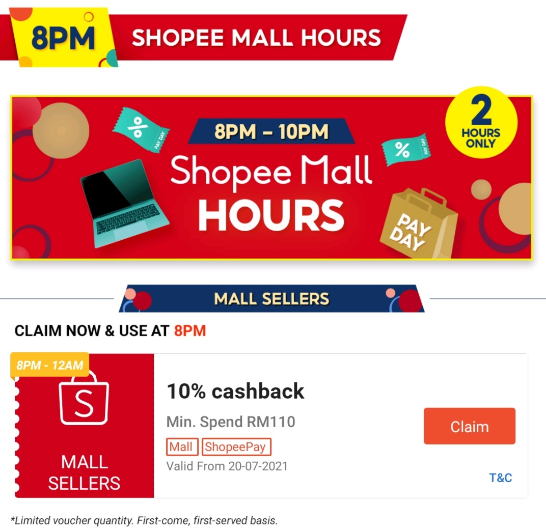 最消费RM110,可获得10%回扣优惠!仅限适用于Shopee Mall 商家!